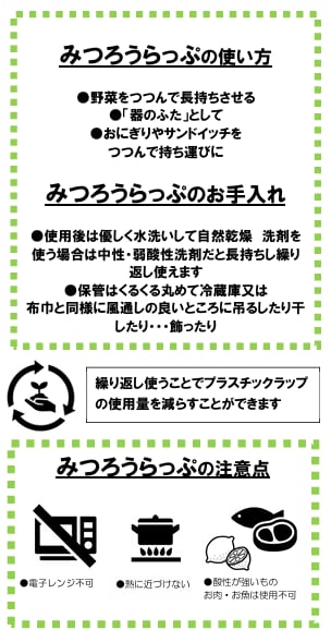 みつろうが持つ天然の抗菌性と、蒸れにくいほどよい通気性で、食品の美味しさをやさしくキープ。