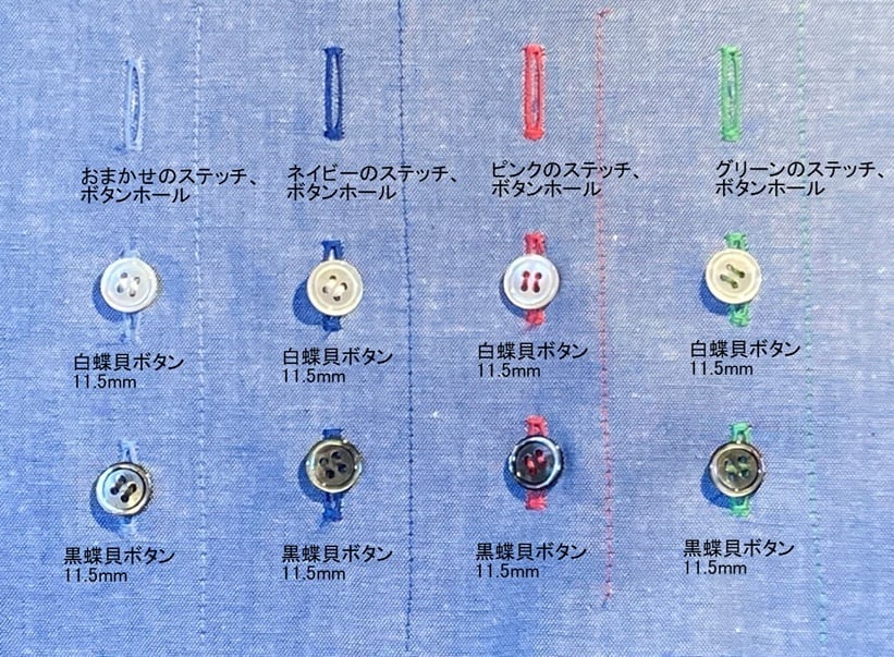 ※ボタン、ステッチ色の見本は、商品写真の中にある見本をご覧ください。